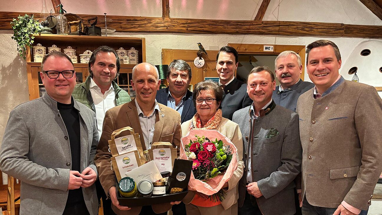Im Foto links nach rechts: Bgm. Franz Aigner, Bgm a.D Christian Bauer, BGM Hannes Zimmermann, Bgm. Franz Stöger, GfGR Herta Holzinger, Bezirkshauptmann Stv. Thomas Markom, NR Bezirksparteiobmann Johann Höfinger, Bgm. Franz Schneider und LAbg. BGM Christoph Kaufmann.