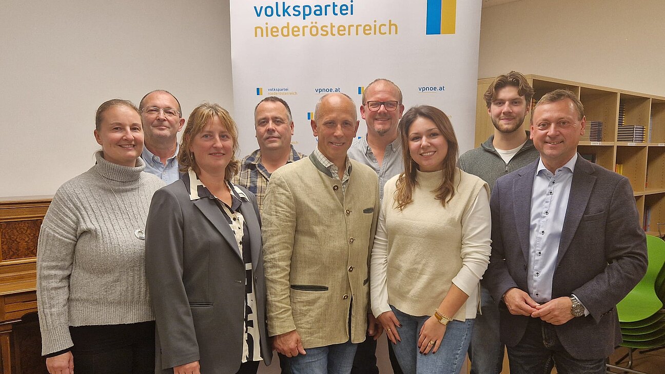 Im Foto links nach rechts: Sabine Treml, Gerhard Novak, Martin Schopf, GPO Bgm. Hannes Zimmermann, Martin Söllner, Magdalena Bständig, Thomas Schicho und NR BPO Johann Höfinger.