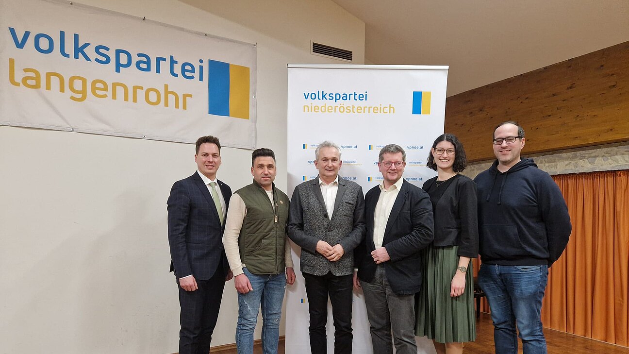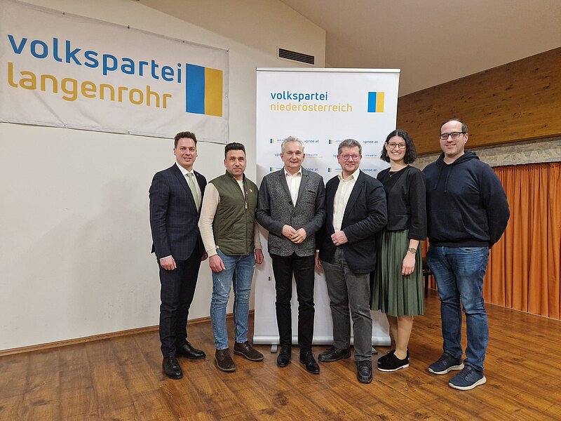 Im Foto links nach rechts: LAbg. Bernhard Heinreichsberger, GPO-Stv. Roland Bogner, Gemeindeparteiobmann Bgm. Leopold Figl, Vbgm. GPO-Stv. Gerhard Figl, Schriftführerin Theresa Zöchbauer und Finanzreferent August Baumühlner.