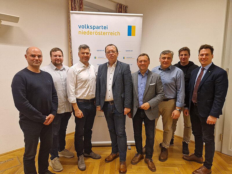Im Foto links nach rechts: Finanzreferent Christian Ruprechter, Finanz Prüfer Gregor Wurlitzer, GPO. Stv. Günther Priesching, GPO Bgm. Johannes Diemt, NR BPO Johann Höfinger, Vbgm. Gerhard Königshofer, Finanzprüfer Johannes Weiss & LAbg. Bernhard Heinreichsberger.