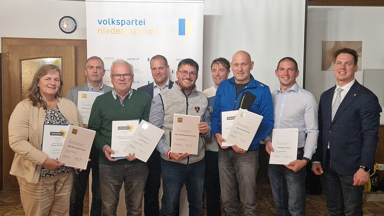 Im Foto links nach rechts: Sylvia Hauber, Gerhard Mittenhuber, Rudolf Maurer, Karl Helm, GPO Michael Grubmüller, Alexander Libal, Werner Rosenstingl, Markus Maurer und LAbg. Bernhard Heinreichsberger.