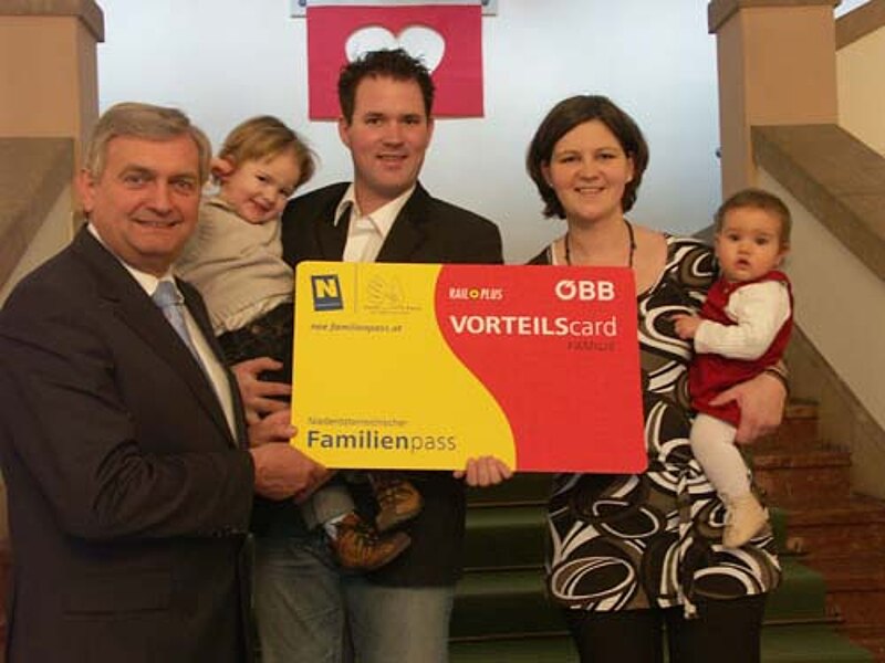 „Im Bezirk Tulln besitzen derzeit 4234 einen NÖ Familienpass und viele Jungfamilien haben diesen bereits heuer beantragt, wie die Familie Elisabeth und Reinhard Resch aus Eggendorf, Gemeinde Sitzenberg-Reidling. Dieser ist anlässlich des 25-jährigen Bestehens mit rund 1.500 Vorteilsgebern und der integrierten ÖBB-VORTEILS-Card ab sofort gratis zu bekommen", betont der VP-Landtagsabgeordnete Mag. Alfred Riedl.