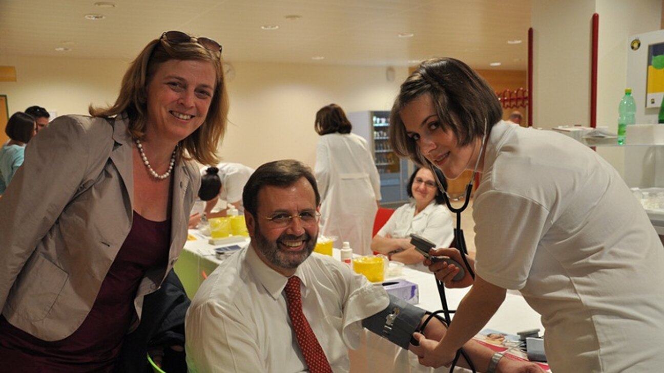 Sehr umfangreich war das Programm am 24.3. im Landesklinikum Tulln. Fachvorträge über Studienlehrgänge für Musik- Physio- und Ergotherapien, Lehrgänge für Hebammen, Gesundheitsmanagement und Advanced Nursing Practice gemeinsam mit der Praxis Tulln wurden angeboten. Auch die Betriebsfeuerwehr hatte ihren Stand und im Blutspendebus konnte jeder Besucher das Angebot nutzen. Landtagspräsident Ing. Penz, der diesen Tag der offenen Tür im Landesklinikum Tulln besuchte, ließ sich – wie am Foto ersichtlich - Blutdruck messen.
